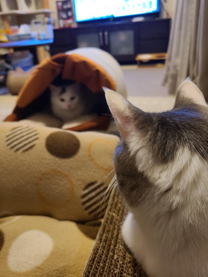 近くに居るとオヤツも食べなくなる😓