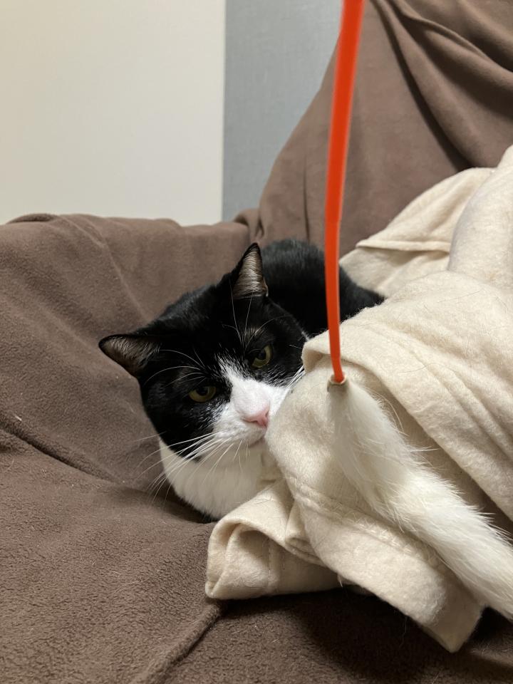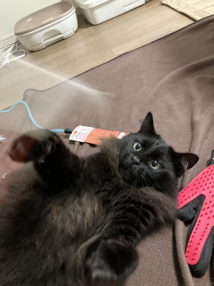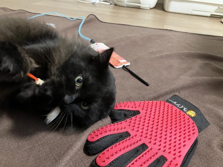 猫じゃらし振るのをやめても、しばらく自分で猫じゃらしをつついたり舐め回して遊んでる(笑)