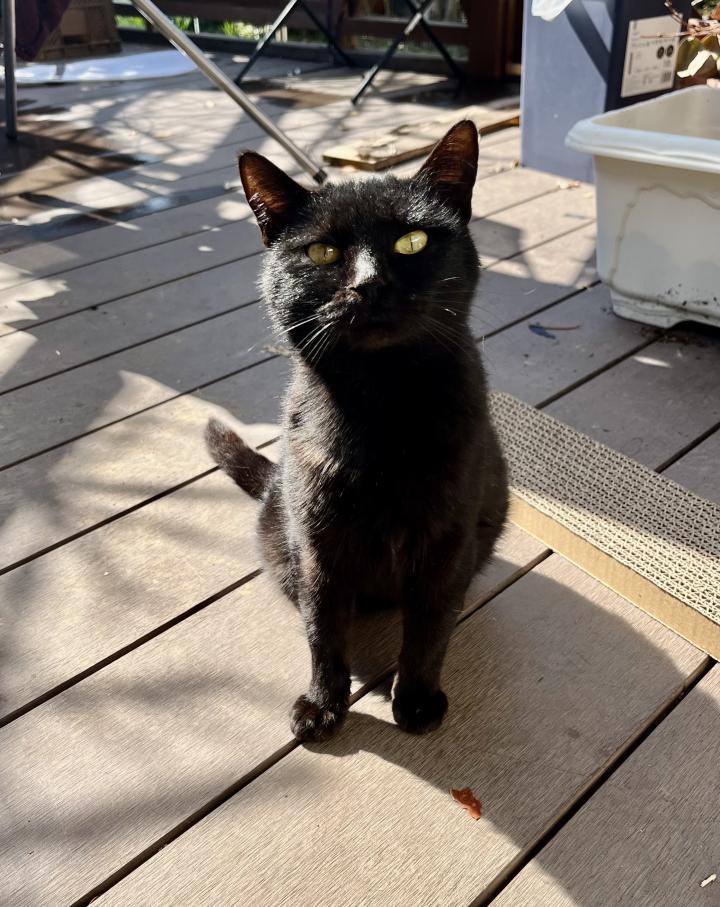 去年11月に迷い込んできた猫がいます。現在庭に住み着いています。ご飯、トイレを設置してウンチの処理は必ずしています。また、冷え込む日は一日に数回湯たんぽをつくって置いています。メスなので避妊手術は済ませ、駆虫もいま行っているところです