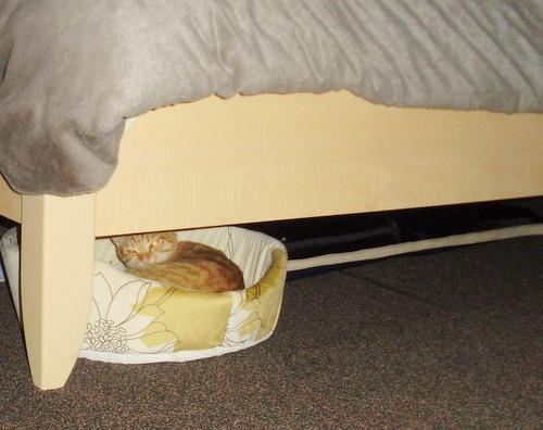ベッドの下で寝ている時はそっとしておきます。