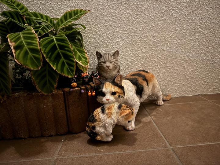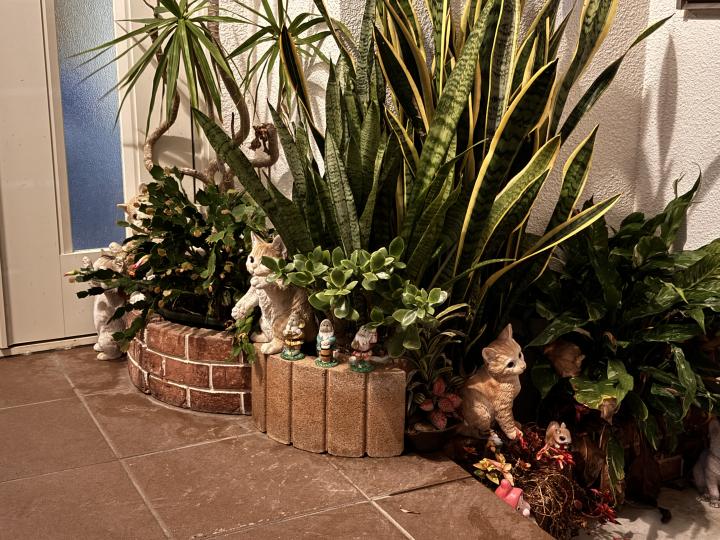 こんな小さいオアシスに、みんなで猫ちゃんの置物何個あると思いますか?