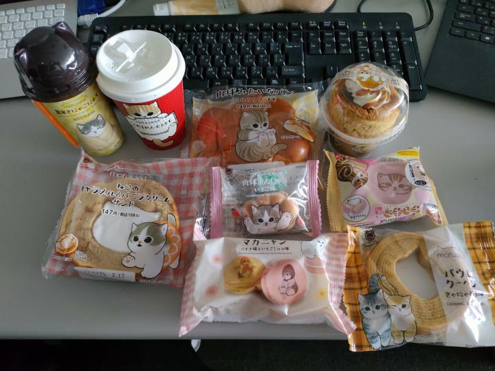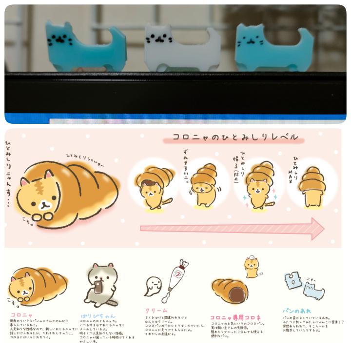 夫が増やしていってます、私のモニターの上に。。。パンのアレの猫。