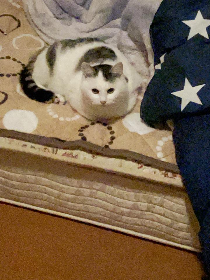 仕事行く時や、お風呂入ってくるねと言うと、いつもこの顔される…🥲そんな睨まなくても…💦譲渡して頂いてから1ヶ月経ちましたが、ずっと前からいるような感じ。めちゃくちゃ甘えん坊のおてんばニャンコです🎵