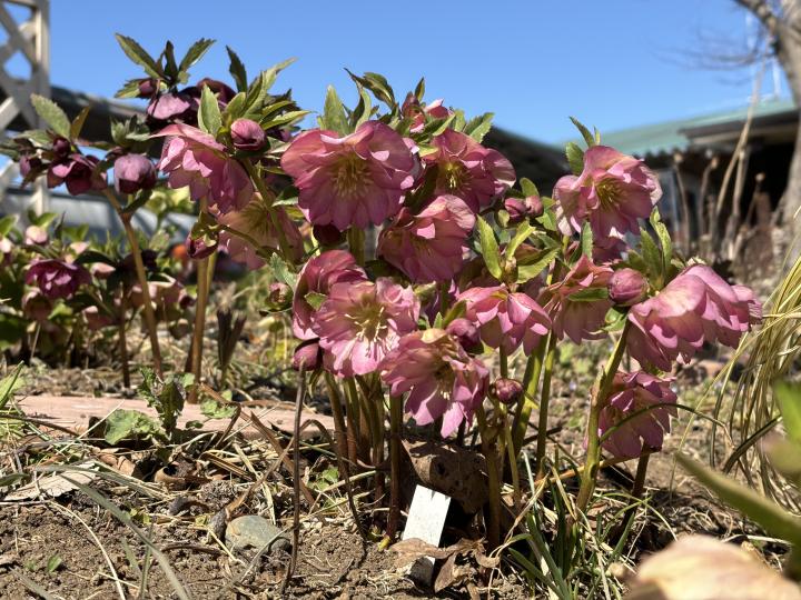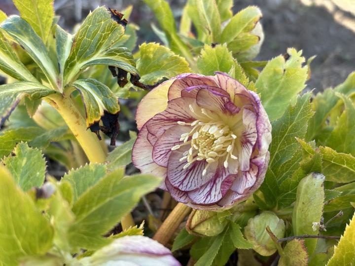庭のクリスマスローズも茎が伸びて華やかに咲き始めましたよ。