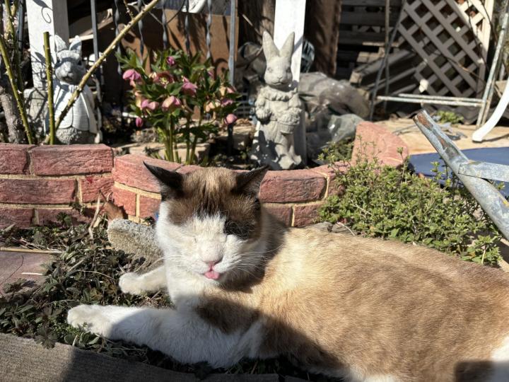 ほら、僕のお口にもピンクの花びらついてるにゃ〜♪