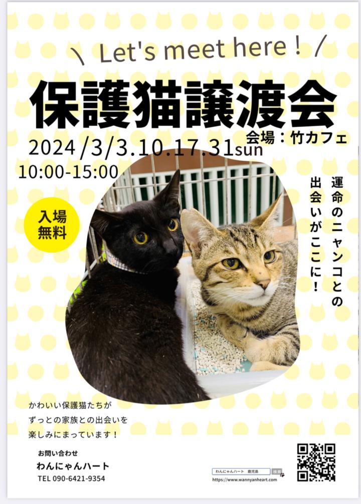 猫を迎えられない事情の方でも、譲渡会のことを猫が欲しい方に伝えてください。それだけでも、保護活動の助けになります。よろしくお願いします。💕