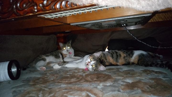お嬢様方はこたつで仲良くしています。