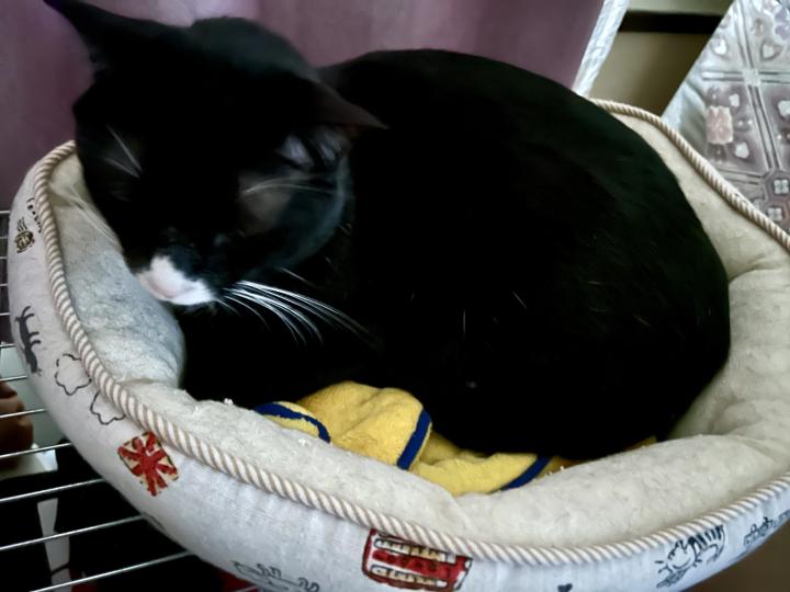 (写真の茶太郎君が寝ているのが本当は大型猫用の福ちゃんのベッド。笑)