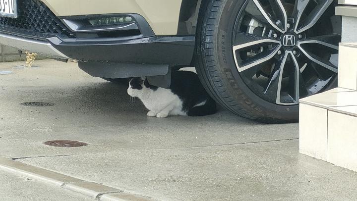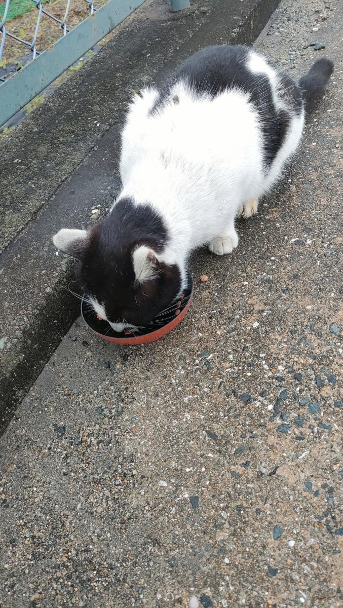 でも、今日、白黒模様の猫ちゃんがいました。初めて見ます。餌やりさんに、写真を回しましたが、初めて見ると👀