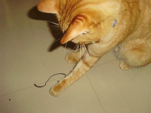 今日、電気コードなどを束ねる針金で遊んでいたファズ。