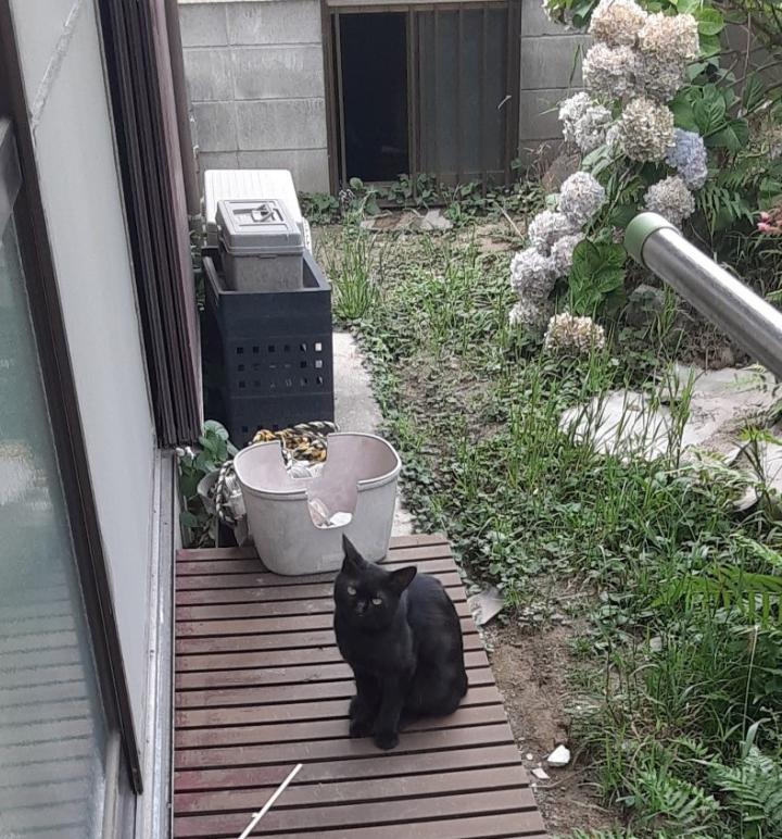 外に出てみると黒猫ちゃんのみ。