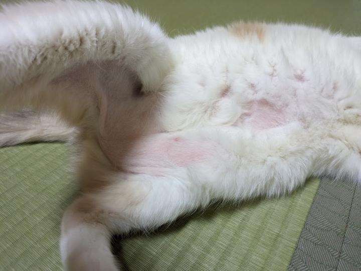 赤みは出てないけど毛は生えない、ハゲが広がってる。