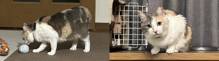 こっちを見たり、体重を測られたり(結果:3.42kg)