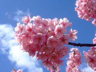 河津桜は緋寒桜と早咲き大島桜の自然交配種といわれ、開花時期が早く、1月下旬から3月上旬にかけて、やや大きめの淡いピンクの花を咲かせます。