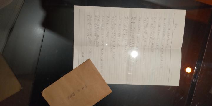 最後の方は狡噛さんの手紙(下記写真)、最新の映画の朱ちゃんからの手紙の展示がありました。