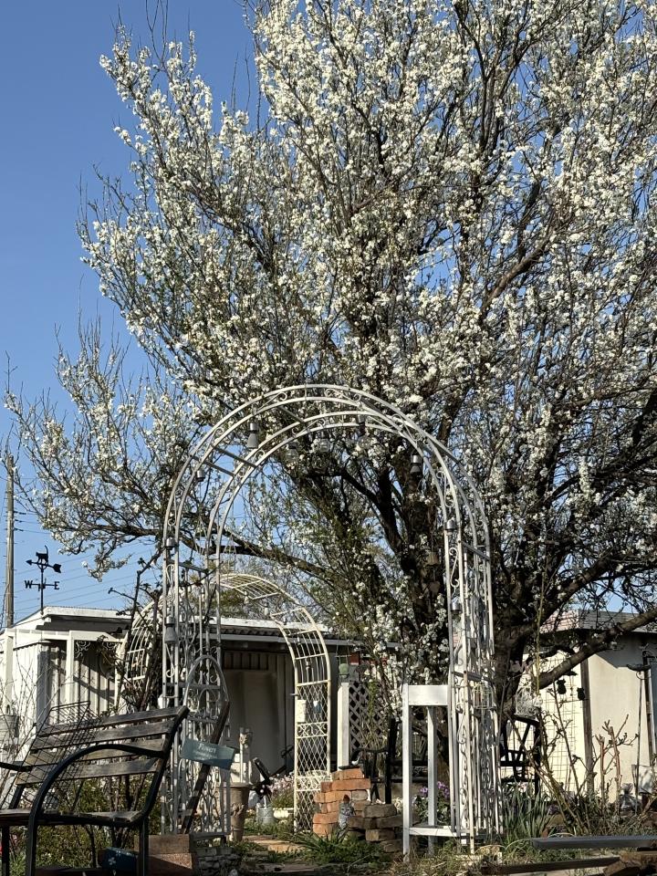 ソメイヨシノよりほんのり早めに咲くスモモの花はまだかいな〜