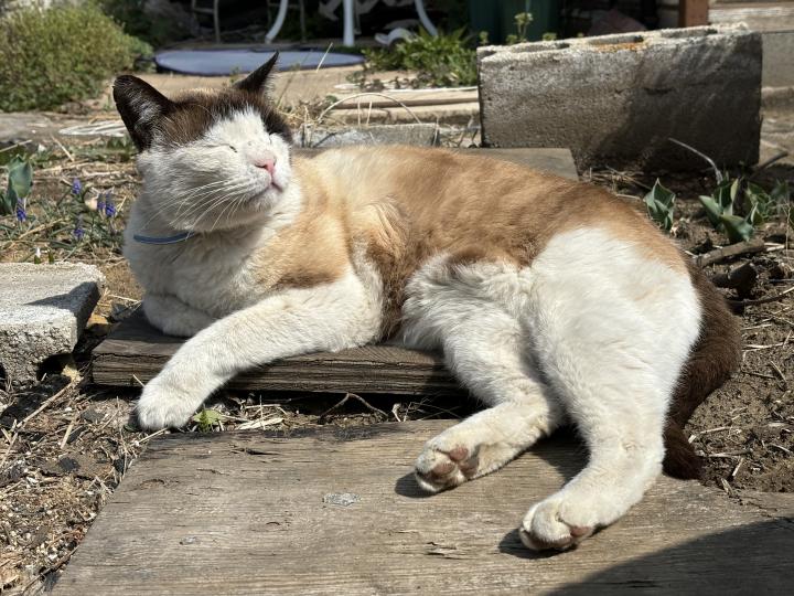 毎日、庭の花が次々に咲いてるから、「猫と花」の撮影はおいおいね。