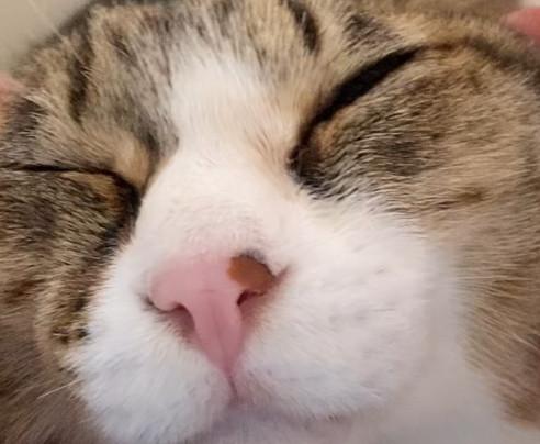 子猫の頃お鼻が黒かったコは成長とともに真ん中の色が抜けて茶色くなるコいるんですよね。
