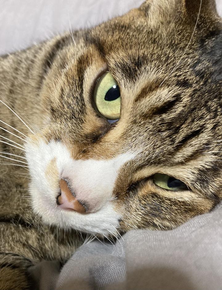あと、キジトラやキジシロでお顔まで色がガッツリついているようなコ。