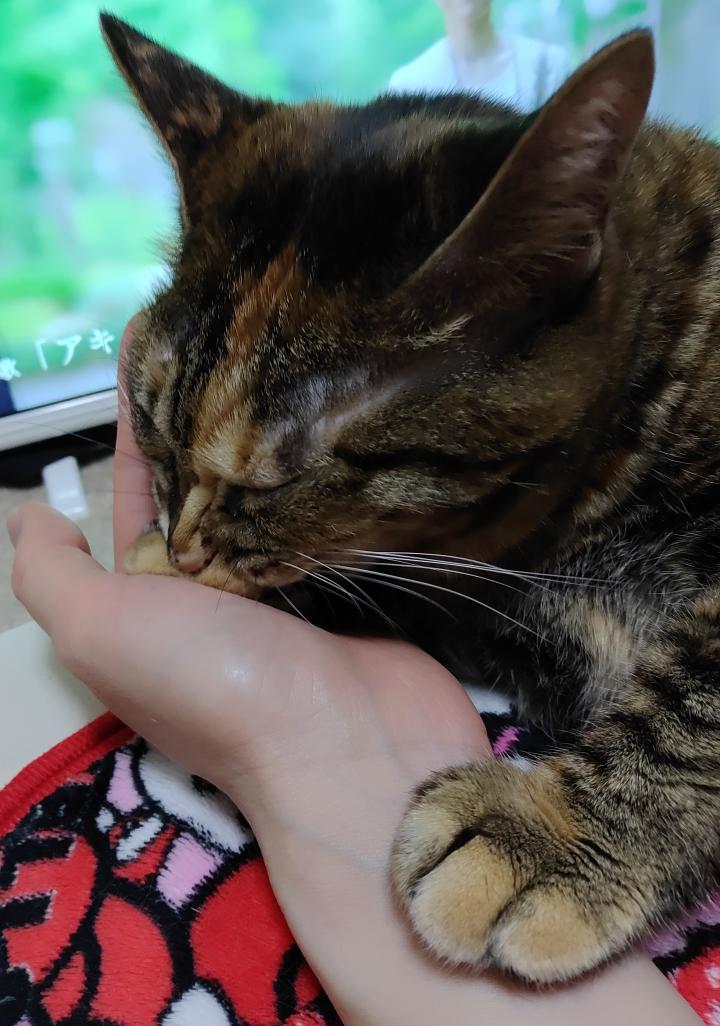 朝起きると、瞳孔が開いててお目々まん丸の姫ちゃんが隣にいて、可愛くてたまらないです😻