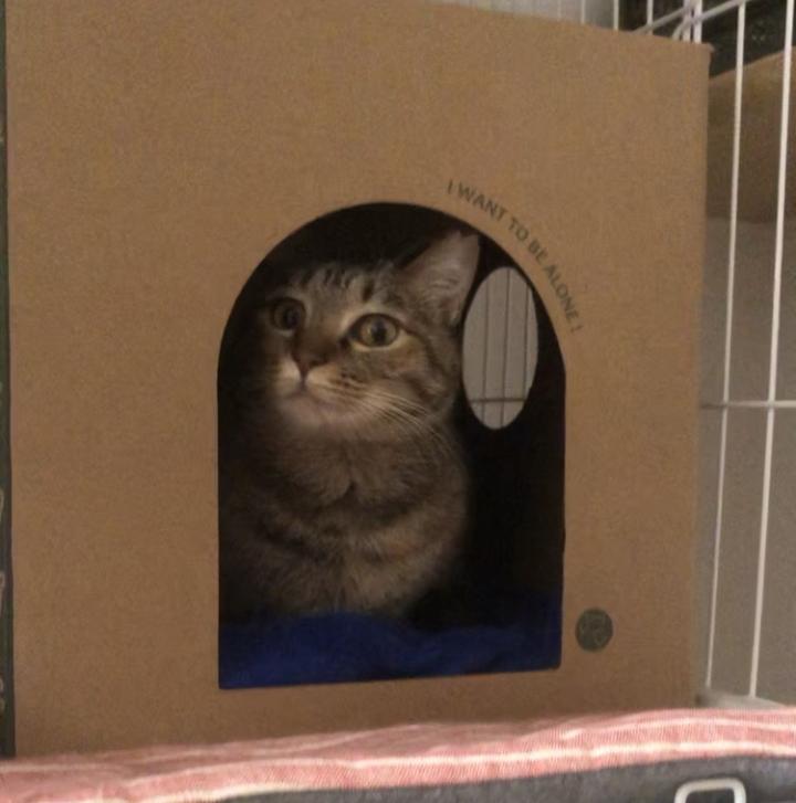 最初クッション入れたら狭くてダメで、上段の爪研ぎでしばらく抗議されました笑