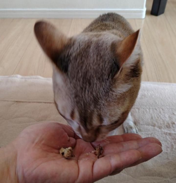 イワシだろうがカリカリだろうが私の手からじゃないと食べない男!