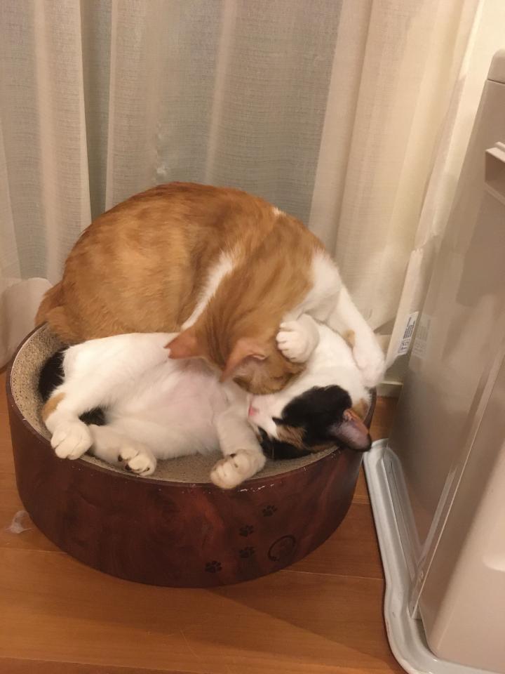 ゆっくりひとりでリラックスして寝ているところに割り込んで入ってペロペロ攻撃。