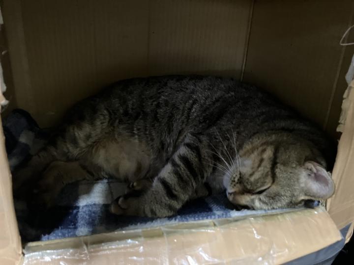 主の心配をよそにご飯食べたらこの始末!寝る子は太る!