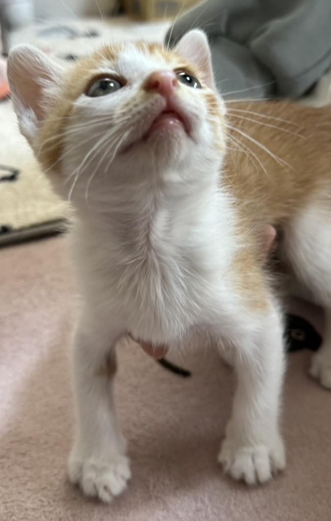 お水だけだと まだ飲めないので、今もカリカリとミルク(薄め)なんですが、昨日あたりから一回分じゃ足りなくて 半分の量をおかわりさせてあげてたんです。