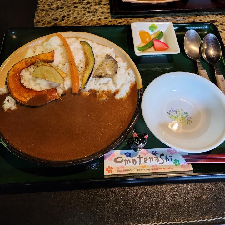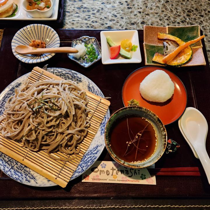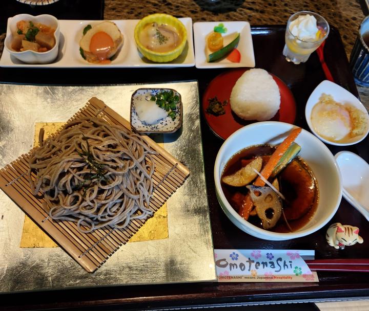 お蕎麦と素揚げ野菜入りのつけつゆ、