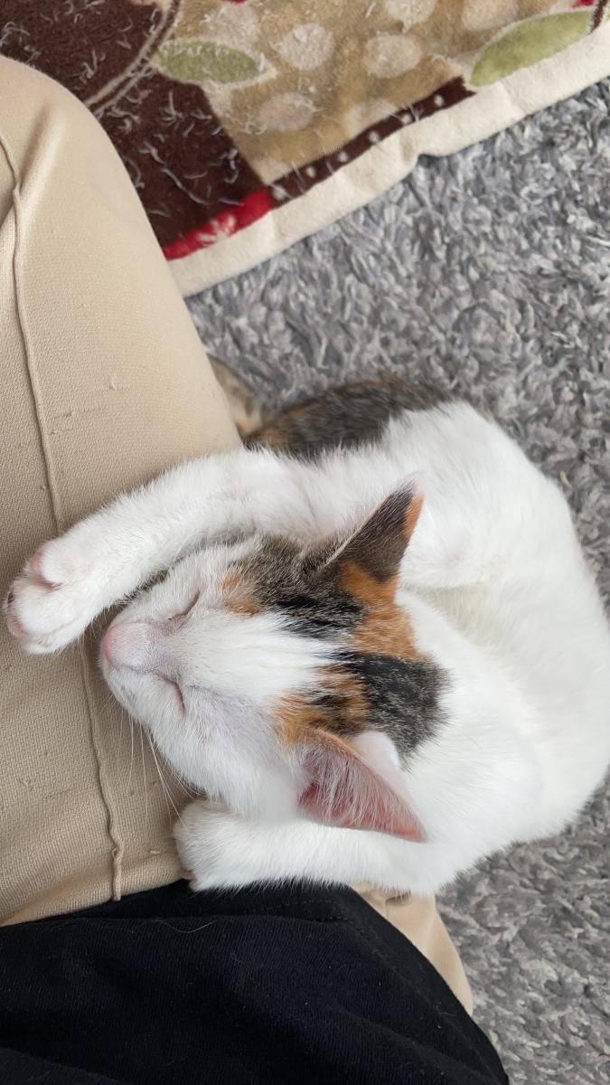 お顔の右側にあるのは手ではなくて足…。