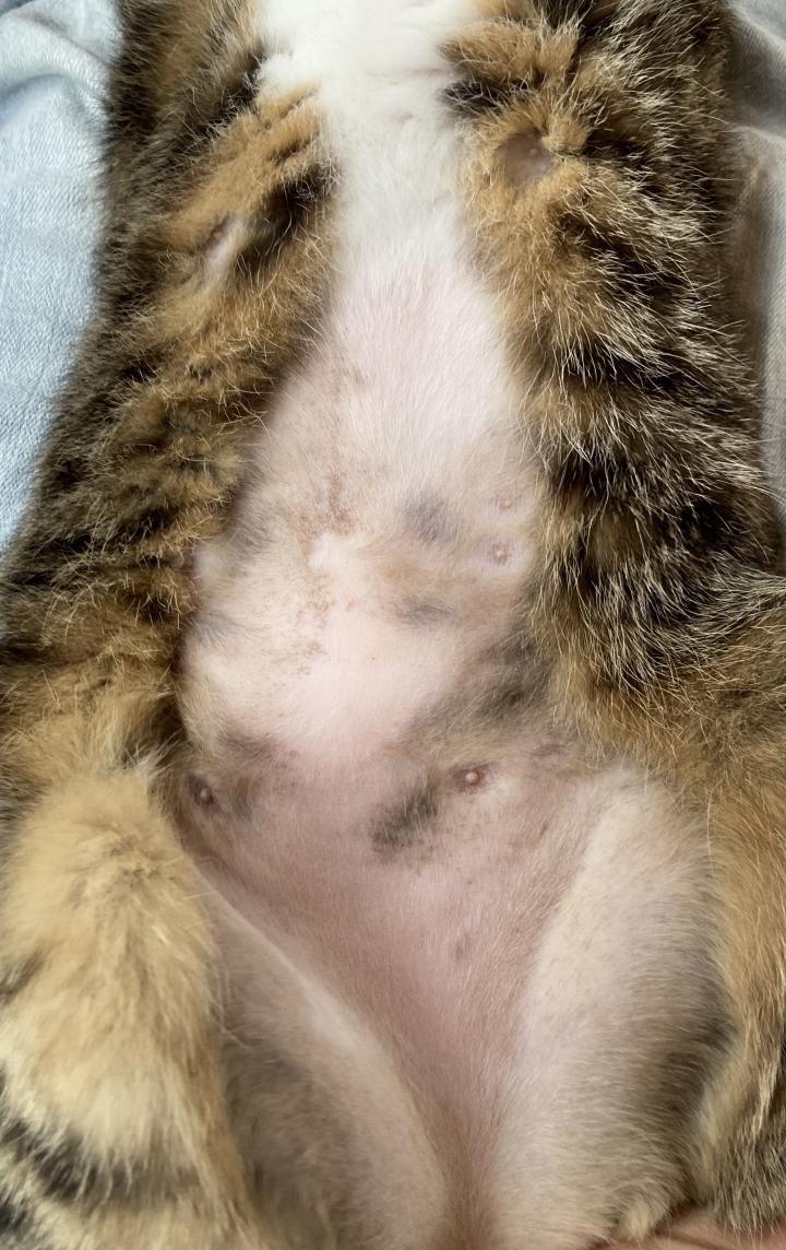 でも1月の地震から悪化してお腹だけだったのが胸までハゲてしまいました。