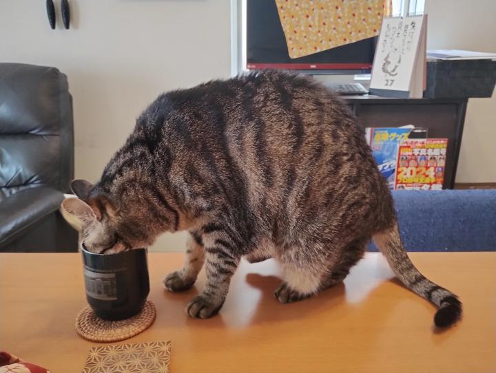 お父ちゃんの飲み残しのお水を飲んでいた!!