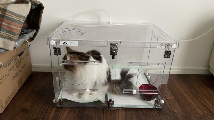 トイレが置けない💦使用したことある人どーしたらいいか教えて欲しいです😣猫ちゃんはずーっと酸素ハウスに入れっぱなしなんですか?それとも出したら、入れたりなんですか?😔