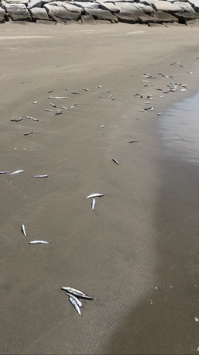 なっている小さな浜辺に足を踏み入れると、なんとたくさんのイワシが