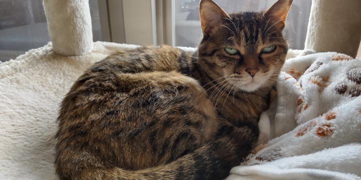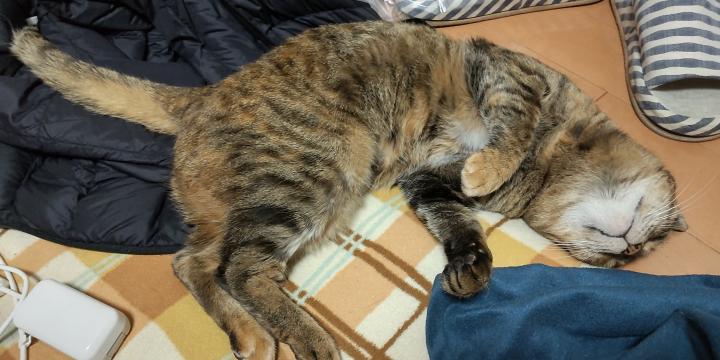 調子が悪かった昨日は私がよく着てるダウンベストにくるまってたり、写真のように寝てたりします。