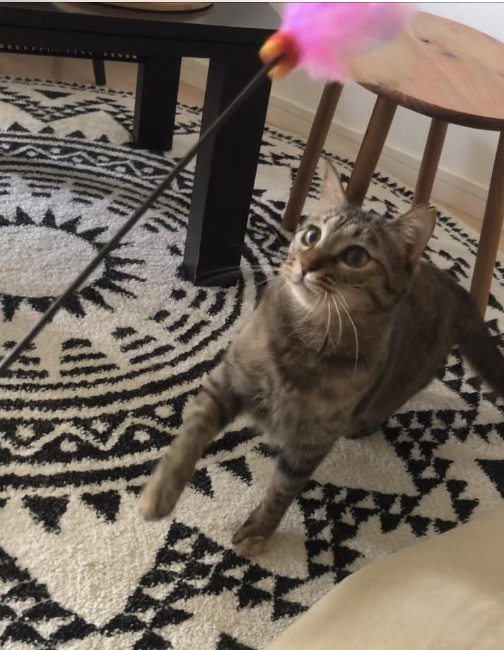 キャットタワーから出て来なかったけど、友人が帰ってから手土産のおもちゃで楽しく遊んでいました☺️