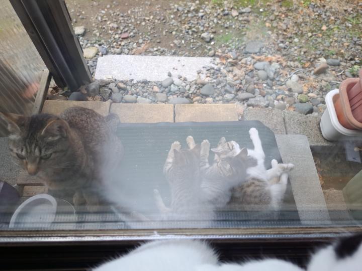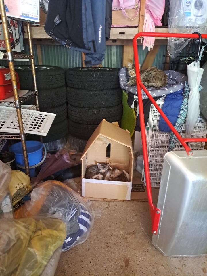 親ネコも、慣れてきたのか、エサ持ってでると、かわいく鳴いて、足元をスリってするように‥。