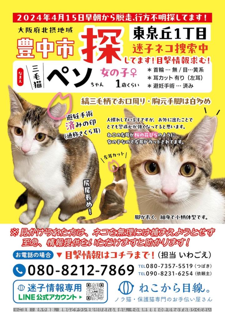 #大阪 #豊中 #迷い猫 #迷子猫 #東泉ヶ丘 #西泉ヶ丘 #東泉丘 #西泉丘