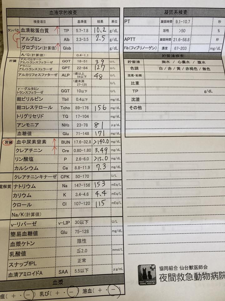 地元の動物病院で腎不全と診断を受け皮下点滴