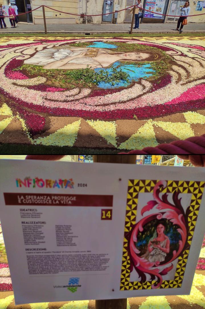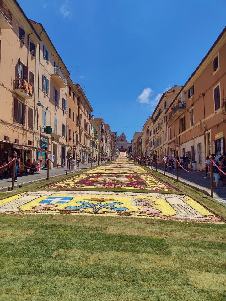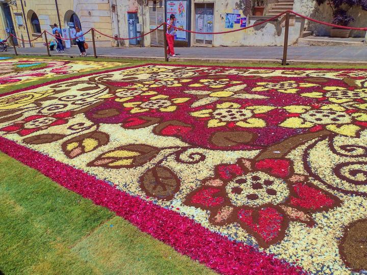 目的はこれInfiorata、花祭りと訳しましたが、道路に花びらで絵を描くお祭り