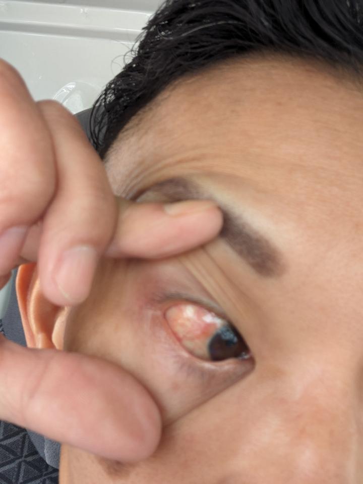 白目に傷が…