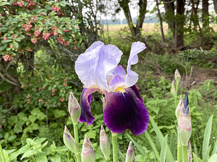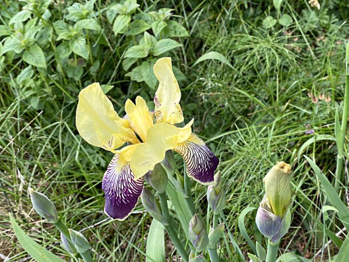 黄色と紫のより花も大きくて上のヒダヒダも立派です。