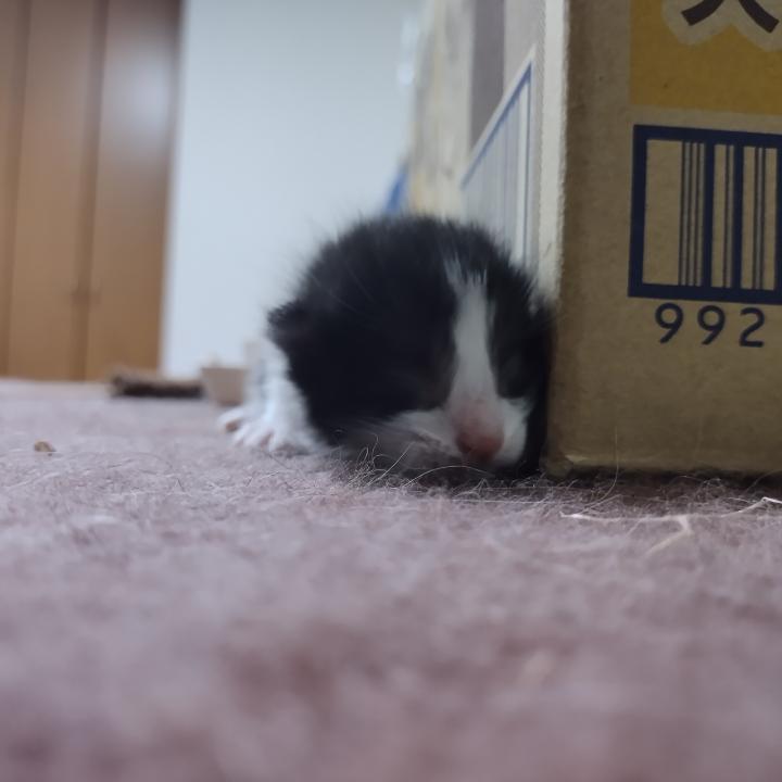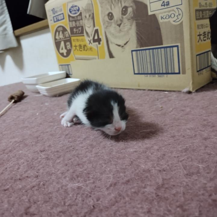 も少し動き回るようになったら床接着の段ボールに引っ越すだろうと今は放置中。
