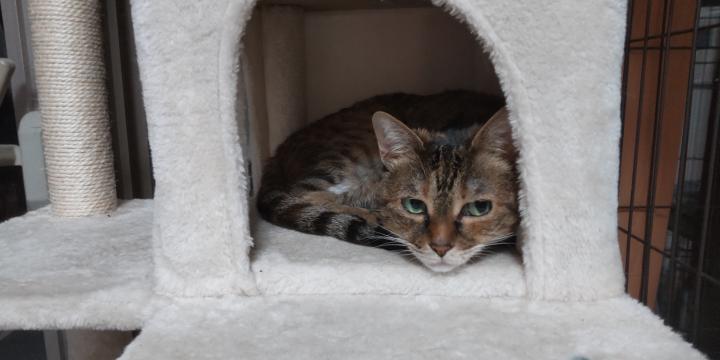 ちなみに飼主がうたた寝してると、大体キャットタワーで拗ねてます。いつでも乗りたい時に膝が空いてないと不服な模様です。