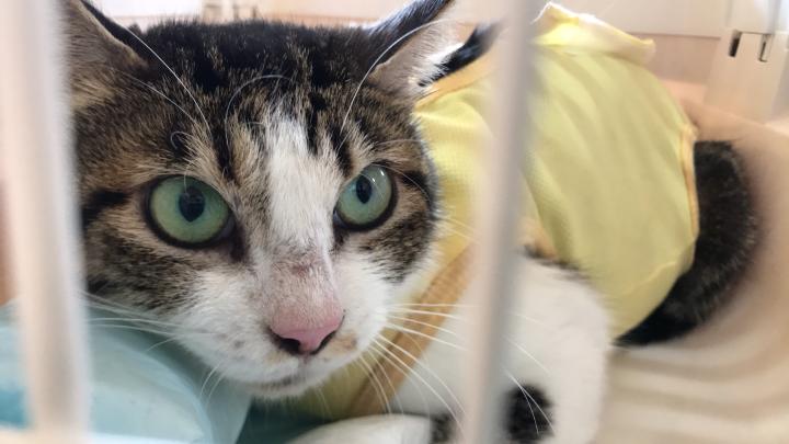 1ヶ月半程前に捕獲機に引っかかったメスの野良猫。