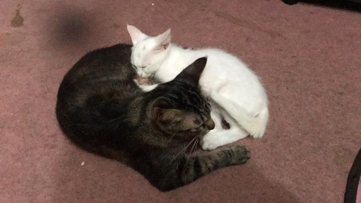 あばれる君がトラママから授乳中。さっきまで黒猫のノアも一緒に受けてたから写真撮りたかった、惜しかったなー。