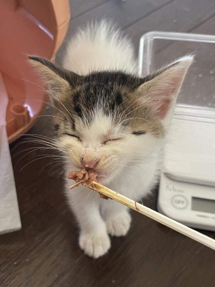 そして今日は、子猫達のウェットフードを食べる瞬間も捉える事に成功!