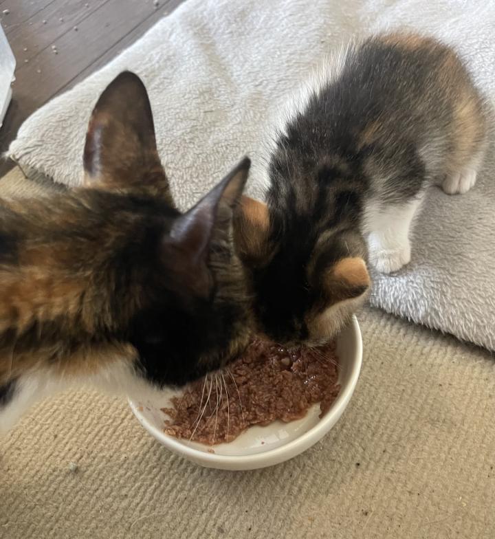 ミケちゃんも母三毛さんと一緒にお皿から少し食べてくれておりました!!
