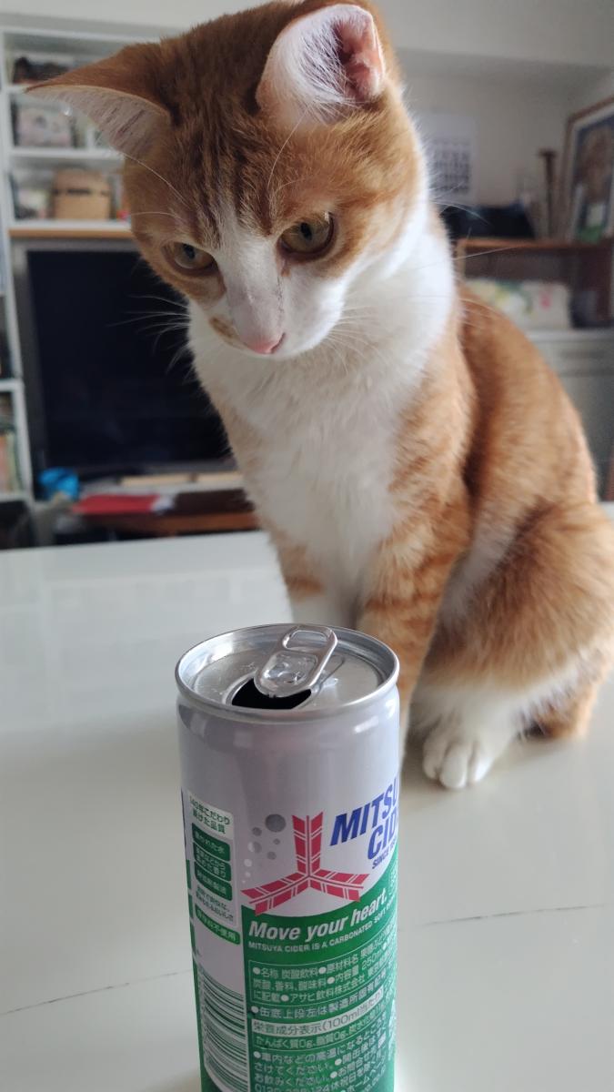 プシューと開けた途端、プリンちゃんずっと見てます。
